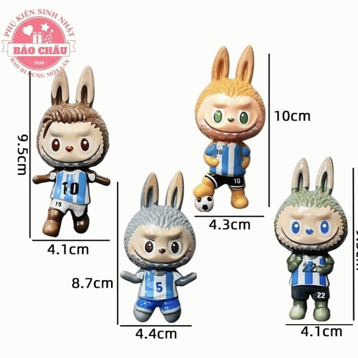 Bộ Labubu Đá Banh (4con) trang trí bánh sinh nhật, bé Labubu trang trí bánh kem 5.0