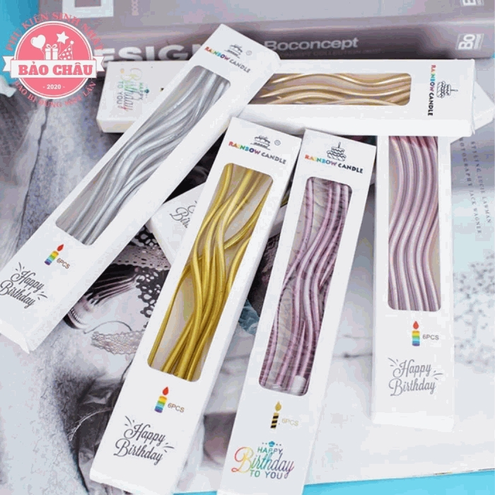 Đồ trang trí bánh kem_VỈ 6 NẾN SÓNG DÀI CAO CẤP