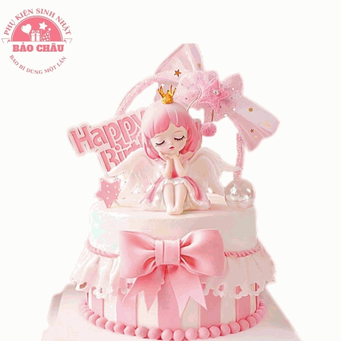 Trang trí bánh sinh nhật bánh kem hiện đại [FREESHIP❤️] em bé thiên thần vương miện vàng
