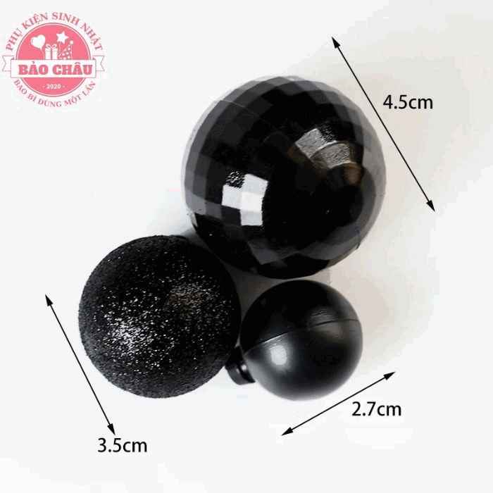 Bộ 3 viên bi màu đen trang trí bánh kem, bánh sinh nhật, bi nhựa trang trí