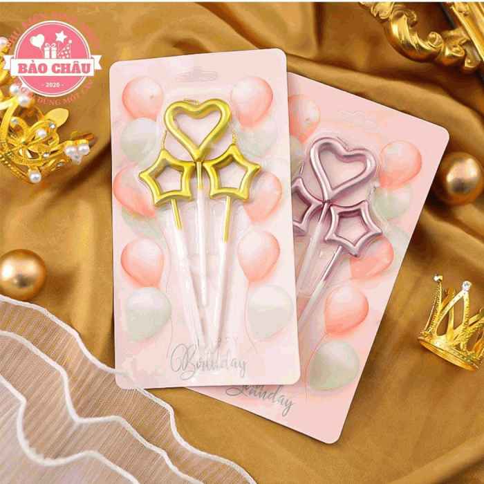 Nến tim sao vàng - Nến sinh nhật hiện đại trang trí bánh, nến sinh nhật hot trend cao cấp (1 vỉ)