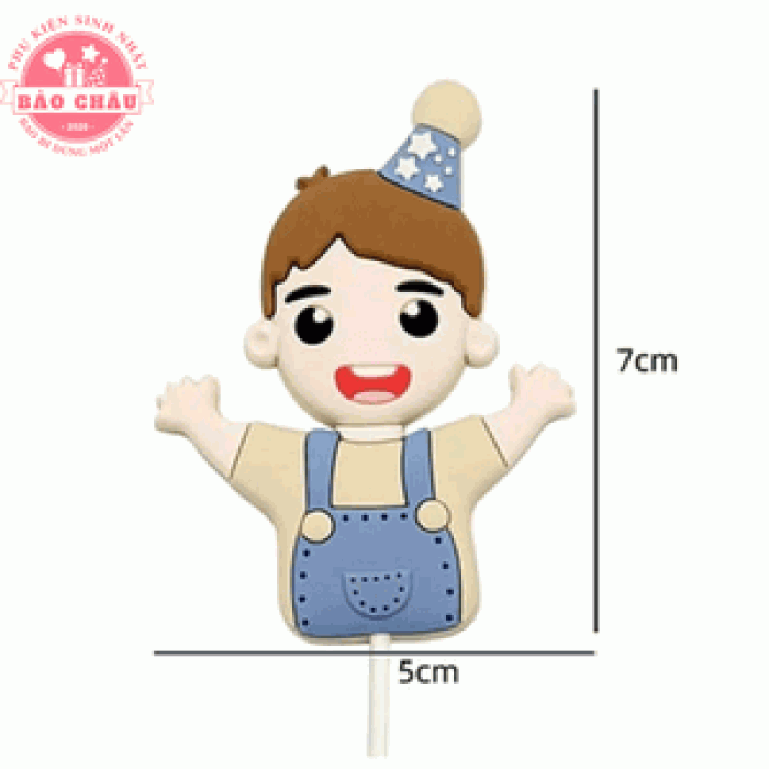 Silicon Em Bé Vui Vẻ Đội Nón Sinh Nhật Trai - Trang trí bánh kem, bánh sinh nhật