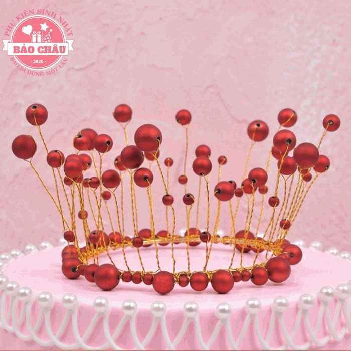 Vương Miện Ngọc Trai Đỏ trang trí bánh kem, trang trí bánh sinh nhật